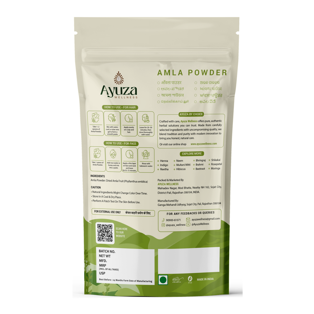 Ayuza Herbal Amla Powder is made from 100% pure, sun-dried Indian gooseberries, carefully processed to retain maximum nutrition and natural goodness. Known as the “King of Herbs” in Ayurveda, Amla is a rich source of Vitamin C, antioxidants, and essential minerals that support overall wellness.