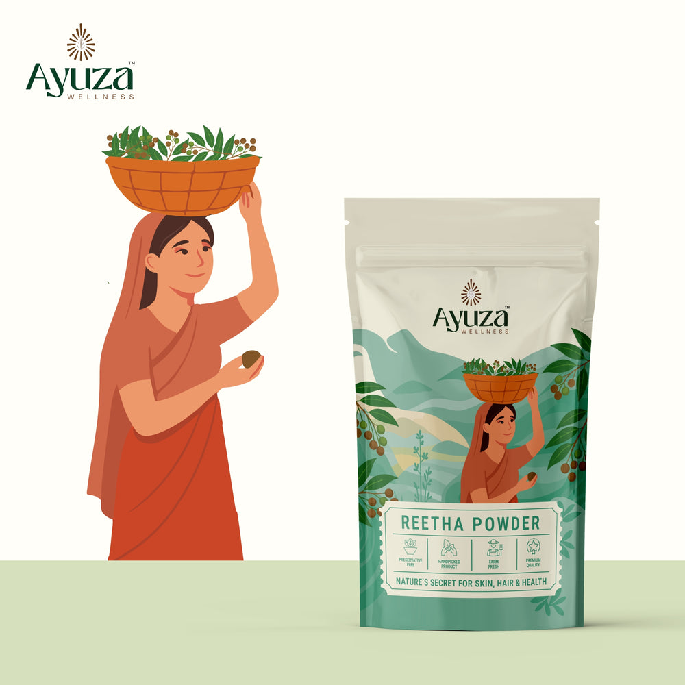 Ayuza Herbal Reetha Powder is made from premium quality soapnuts, naturally dried and finely ground to preserve their cleansing properties. Revered in Ayurveda for centuries, Reetha is a gentle, eco-friendly cleanser that promotes strong, shiny hair while keeping the scalp healthy and dandruff-free. It is also known as a natural alternative to chemical-based shampoos and soaps.