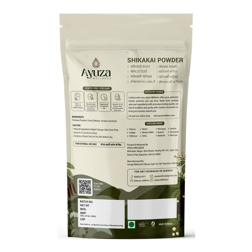 Ayuza Herbal Shikakai Powder is a 100% natural hair care solution, made from handpicked Shikakai pods that are dried and finely ground to preserve their natural nutrients. Known as the “Fruit for Hair” in Ayurveda, Shikakai is a gentle cleanser that nourishes your scalp, strengthens roots, and promotes healthy, shiny hair—without stripping away natural oils.